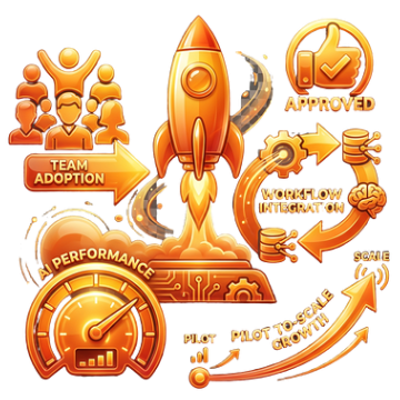 Our work combines pilot launch, workflow integration, role-based enablement, change management, and performance monitoring so organizations can validate results while building trust and adoption at the same time.