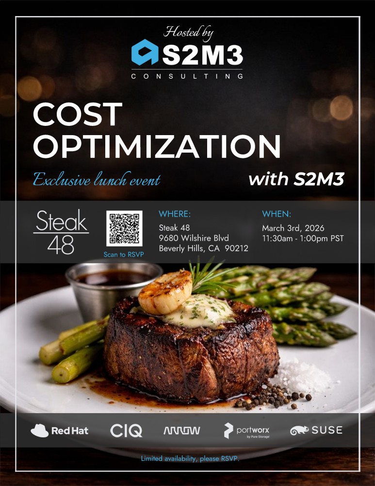 Join us for an exclusive executive lunch event at Steak 48 in Beverly Hills on March 5, 2026 at 11:30 AM PST, hosted by S2M3 Consulting sponsored by CIQ and in partnership with Red Hat, SUSE, Arrow, Portworx by Pure Storage, and CIQ.